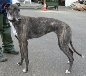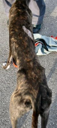 When Casey the greyhound arrived at the centre with Inspector head she was a pitiful sight.