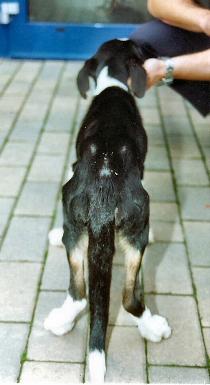 Junior, a 2 year old Great Dane, was brought to the Centre in October 1999 by Inspector Kate Head. he was extremely under weight and his body was covered in sores.
